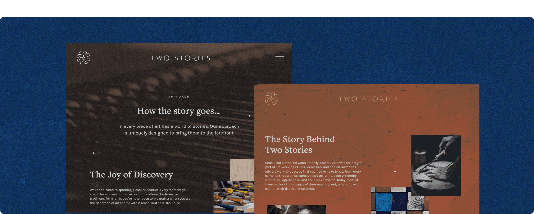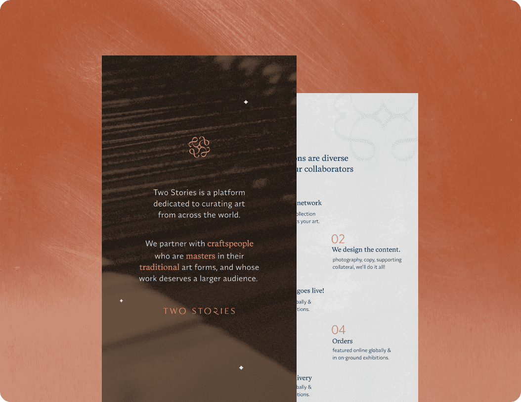 Paired with a tactile palette and evolving graphic system, the identity reflects Two Stories’ vision: a meeting point of tradition and modernity, where local artistry finds a global stage.