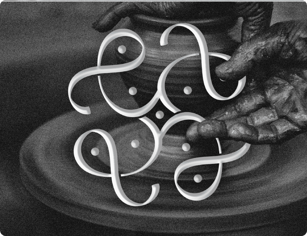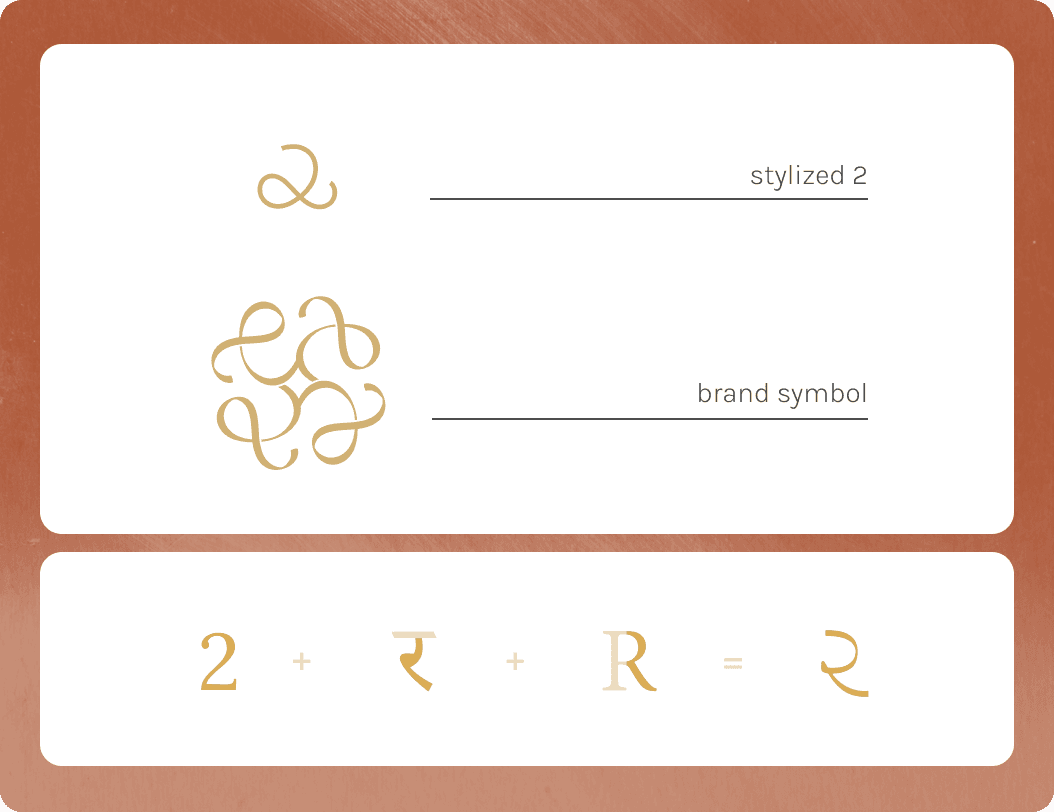 Our concept revolved around time and space—how craft carries memory and evolves through exchange. The wordmark balances this duality: a subtle Devanagari hint in the “R” grounds it in Indian roots, while Latin letterforms open it to the world. The symbol, a revolving form derived from the number “2,” captures movement and transformation.